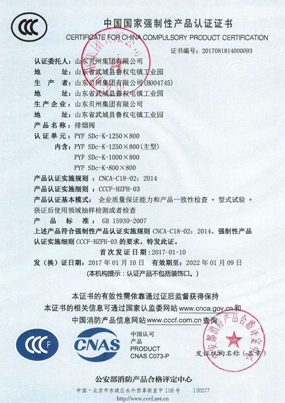 • 防火閥認(rèn)證證書(shū)